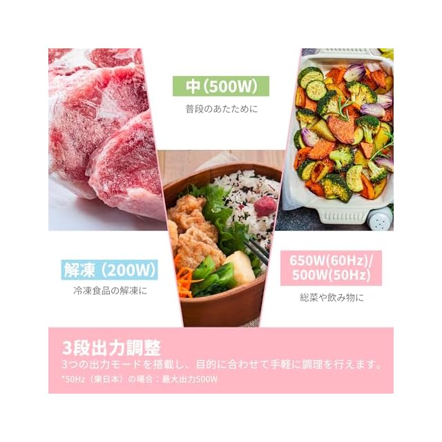 【3段出力調整】強・弱・解凍の3つの出力モードを搭載し、目的に合わせて手軽に調理を行えます。使用頻度の高いメニューは、レンジに記載通り行えば、簡単にすぐに調理可能です。