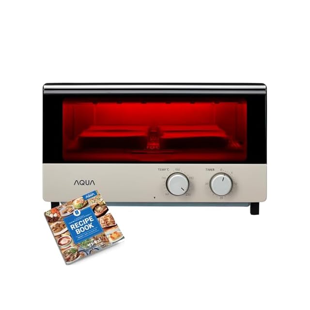 《新品未開封》アクア (AQUA) トースター 4枚焼き (1200W / 遠赤外線ヒーター / 30分タイマー) オーブントースター 温度調節可能 (受け皿/レシピブック付き) TS4HR グレージュ