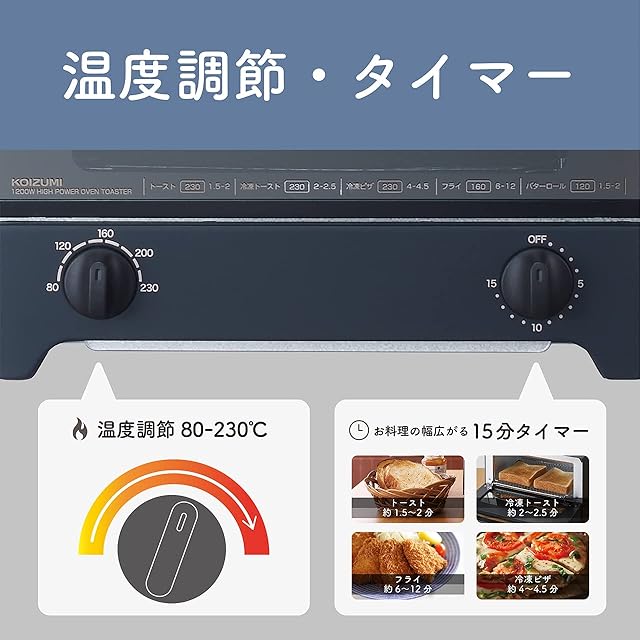 商品名:《新品未開封》コイズミ オーブントースター 1200W 無段階温度調節 15分タイマー 2枚焼き ミラーガラス扉 ブラック KOS-1217/K