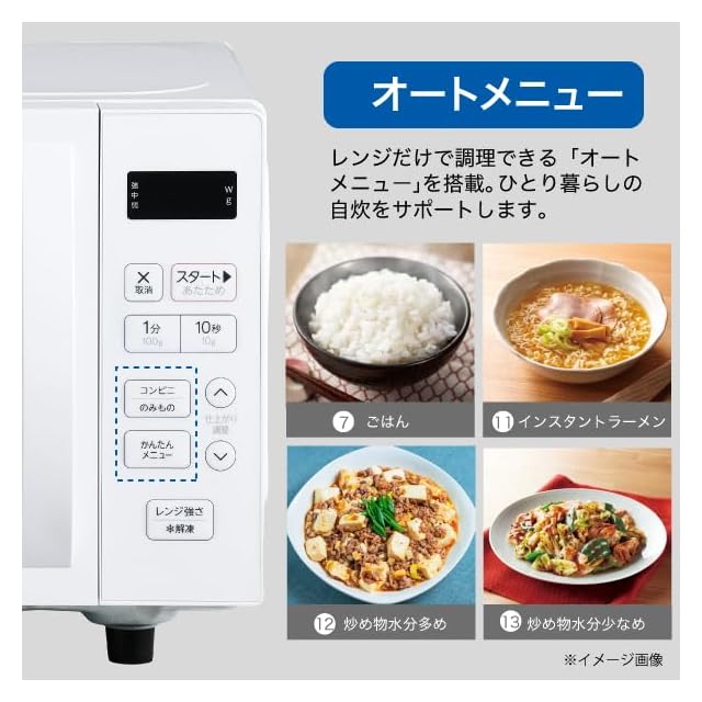 【オートメニュー】レンジだけで調理できる13種類のオートメニュー付き。コンビニのお弁当あたためや炒めもの(水分少なめ)も、簡単においしく仕上がります。