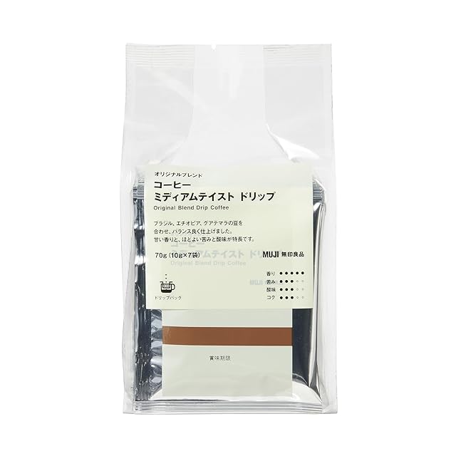 商品名:《新品未開封》無印良品 オリジナルブレンドコーヒー ミディアムテイスト ドリップ 70g(10g×7袋) 83782085