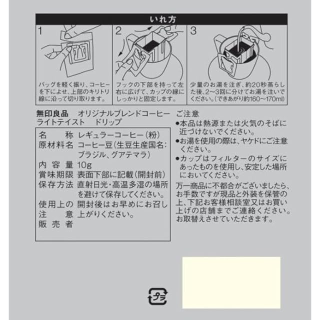 《新品未開封》無印良品 オリジナルブレンドドリップコーヒー (個装) ライトテイスト 10g 83868406