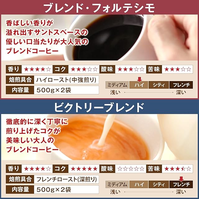 【内容量】ビクトリーブレンド 500gx2袋 ブレンドフォルティシモ 500gx2袋