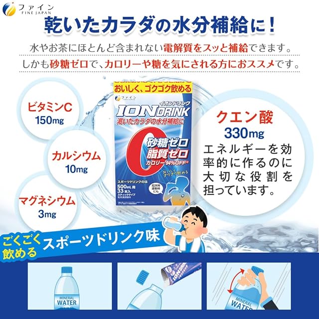 《新品未開封》ファイン スポーツドリンク イオンドリンク 難消化性デキストリン 粉末 33包 砂糖不使用 脂質ゼロ ビタミンC クエン酸 スポーツドリンク 味 国内生産