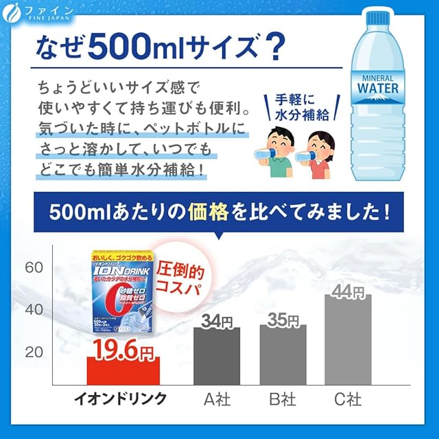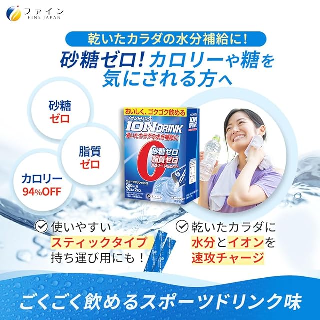 商品名:《新品未開封》ファイン(FINE JAPAN) スポーツドリンク イオンドリンク スポーツドリンク味 砂糖ゼロ 脂質ゼロ 国内生産 22包入×3個セット