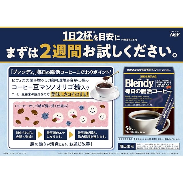 《新品未開封》AGF ブレンディ スティックブラック 毎日の腸活コーヒー 56本 【 インスタント 】【 水に溶ける 】 【 マンノ オリゴ糖 】