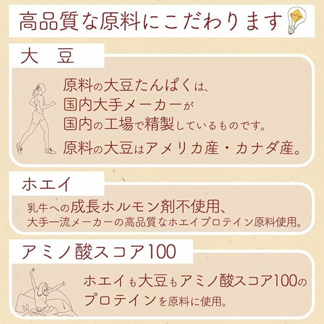 大豆+ホエイを1対む1で配合したプロテインです。