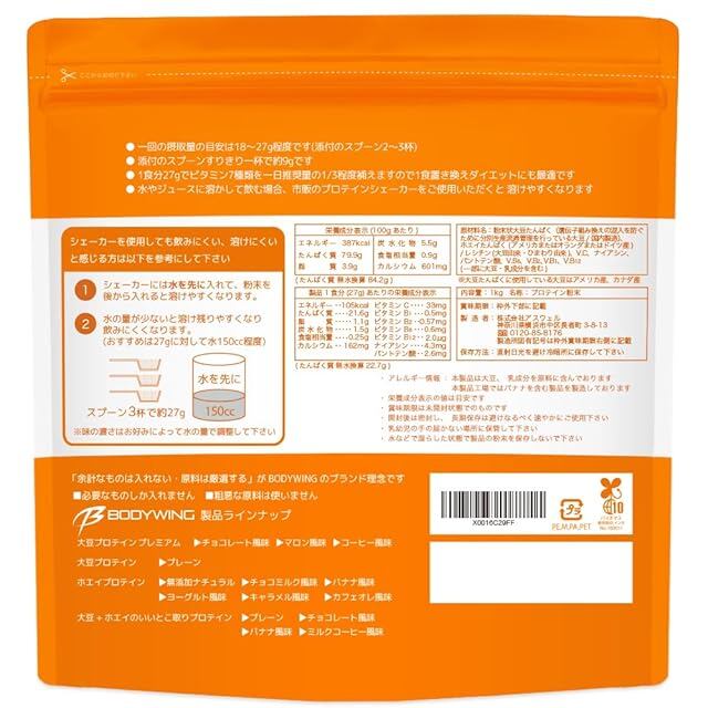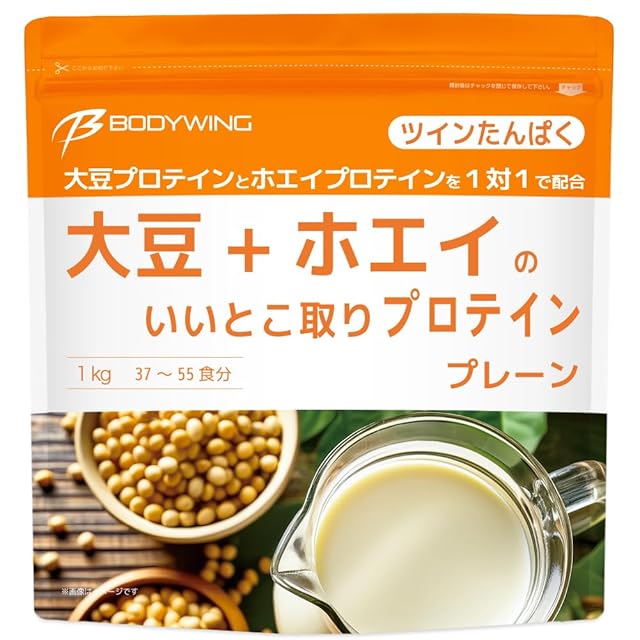 商品名:《新品未開封》ツインたんぱく 大豆+ホエイの いいとこ取りプロテイン ボディウイング (1kg, プレーン)