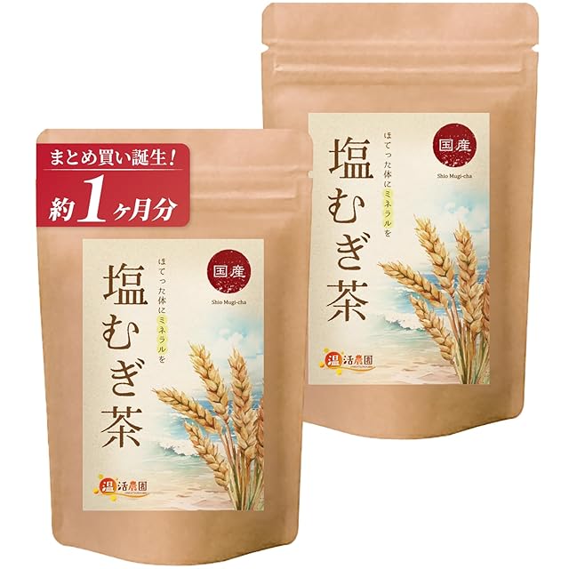 《新品未開封》温活農園 塩むぎ茶 国産 ティーバッグ 2袋セット (8g×15包/公式ブランド) 塩麦茶 しおむぎちゃ 麦茶
