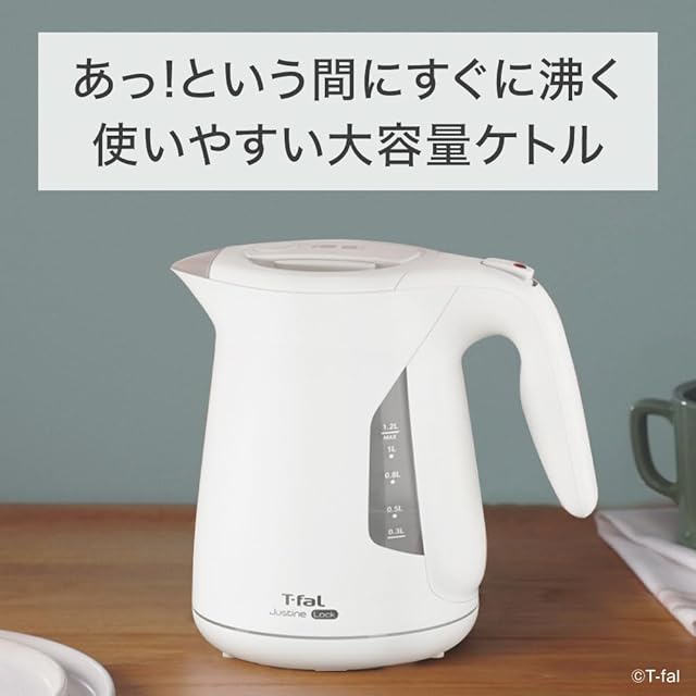 《新品未開封》ティファール 電気ケトル 1.2L 大容量 転倒お湯もれロック 「ジャスティン ロック ホワイト」 省スチーム設計 KO5901JPA