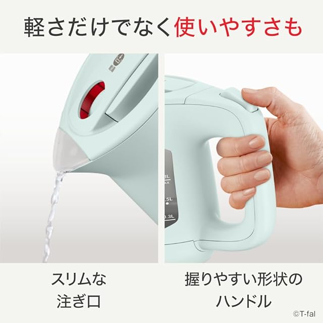 【注ぎやすい設計】握りやすい手になじむ人間工学に基づいたハンドル。スリムな注ぎ口:一気に給湯したい時も、コーヒーを淹れる際の繊細な給湯も思いのままに。