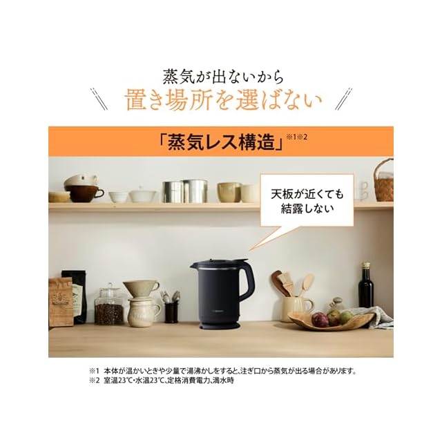 蒸気を本体の外に出さないので、置き場所に困らない「蒸気レス構造」