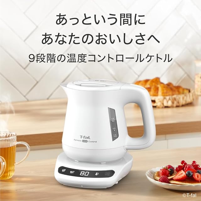 《新品未開封》ティファール 電気ケトル 0.8L 温度調節 9段階 マットな質感のデザイン 転倒お湯もれロック 「アプレシア ロック コントロール ホワイト」 省スチーム設計 保温 KO8601J0