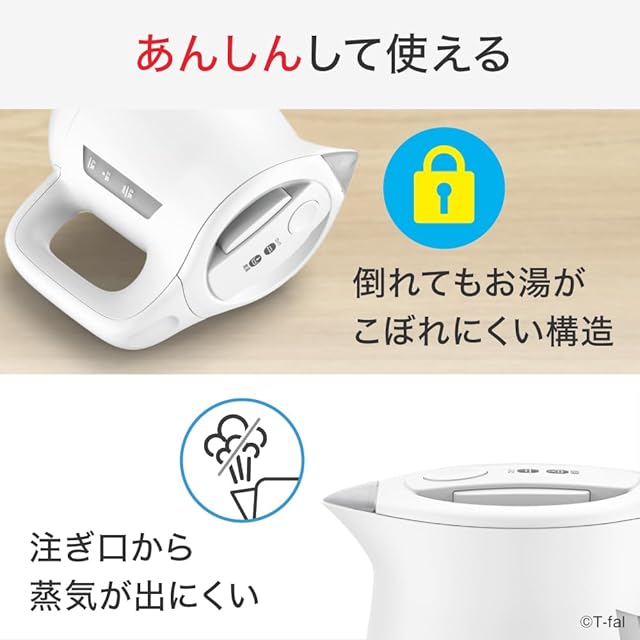 【安心・安全設計】転倒お湯もれロック、空焚き防止、自動電源オフで安心。