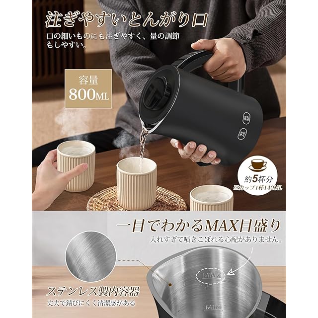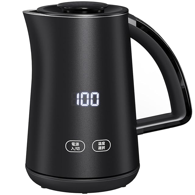 商品名:《新品未開封》Aliliy 電気ケトル 電気ポット 小型 7段階温度調節 0.8L 一人暮らし 二人暮らし 湯沸かしケトル ディスプレイ 900W 2時間保温 二重構造 触れても熱くない 急速沸騰 空焚き防止機能 熱湯 お茶 ミルク コーヒー マットな質感 木目柄 ブラック PSE認証済み (マットブラック)