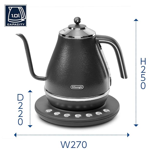 商品名:《新品未開封》De'Longhi (デロンギ) 電気カフェケトル アイコナ KBOE1230J-GY 温度調整機能付き ステンレス ハンドドリップ 1.0L ワンプッシュ5段階温度設定 20分保温機能 正確な注ぎ心地 見やすい水量計 [プレステージグレー] デロンギファミリー登録で3年