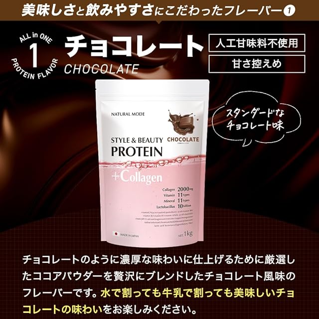 《新品未開封》NATURALMODE ビューティープロテイン 1kg 人工甘味料不使用 女性向け コラーゲン ソイプロテイン (1kg, チョコレート風味)