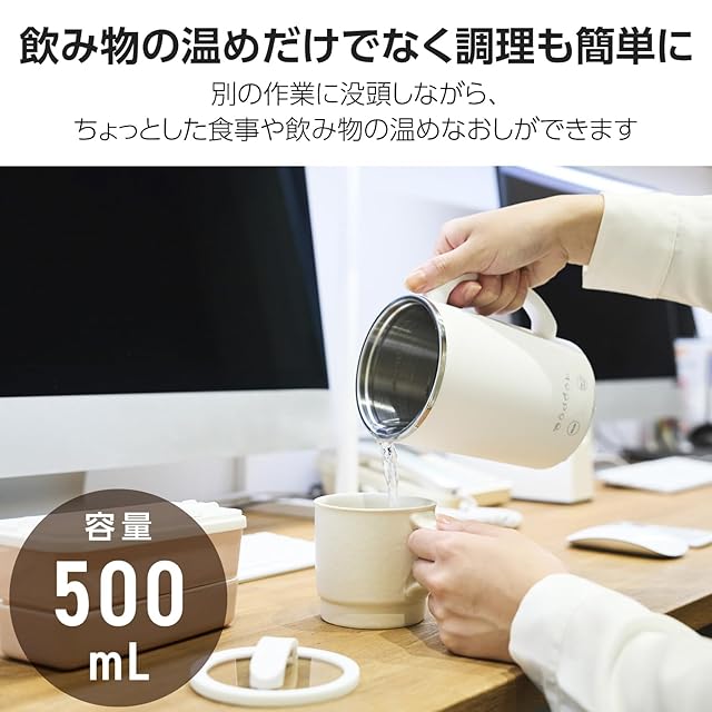 冷凍食品やインスタント食品なども簡単に調理できるので、ランチタイムのプラス1品や、帰宅が遅い日のちょっとした食事をすぐ用意できます。500mlのペットボトルをそのまま注いで温めるのにも便利です。