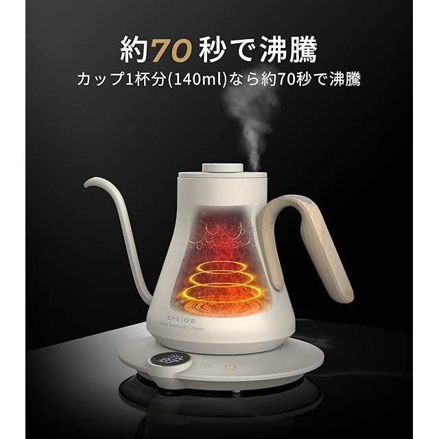 【お茶・コーヒー好きな人へのプレゼント】Epeiosの電気ケトルは0.9Lの容量で、1〜4人暮らしに最適です。コーヒー好きな方や日常使いにもおすすめです。誕生日プレゼントや引越し、結婚記念日、クリスマス、お祝い、母の日、父の日など大切なイベントでの贈り物にも最適です。ゆっくりと丁寧に注いでコーヒーの風味を引き出すことにも、赤ちゃんのミルクやお茶を淹れたりする日常使いにも活躍いたします。 その他の詳細