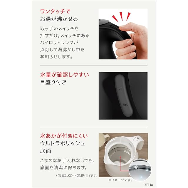 商品名:《新品未開封》ティファール 電気ケトル 1.0L 転倒お湯もれロック 「ジャスティン プラス ロック ブラック」 KO4428JP