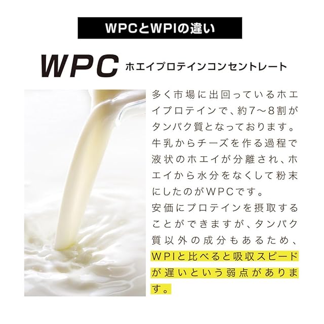 【より良質なホエイをお求めの方へ】 WPIとは一般的なWPCホエイプロテインから乳脂や乳糖などを取り除いた物です。 プロテインは動物性を取りたいけど脂質が気になるという方や牛乳でお腹を下してしまいがちな方におすすめのプロテインです。 また、少ない水でもしっかり溶かすことが出来ます。