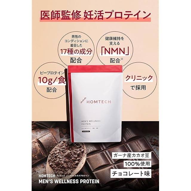 《新品未開封》【チョコレート味】 オムテック メンズウェルネスプロテイン 妊活 プロテイン 男性活力をサポート (葉酸/亜鉛/アルギニン/シトルリンなど17種成分配合) 750g