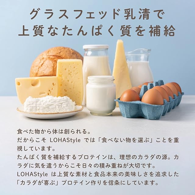 【丸ごと柚子を感じられるグラスフェッドプロテイン】オーストラリア南東部のビクトリア州の沿岸地域 は、偏西風の影響で自然降雨に恵まれ、豪州で最も酪農に適した地域です。 <br> グラスフェッド牛由来の生乳から抽出された高品質の粉末タイププロテインです。<br> 【人工甘味料不使用】<br> 人工甘味料不使用のLOHAStyleグラスフェッドプロテインは、天然甘味料「ステビア」を使用。