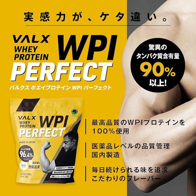 メジャーリーガー多数指導のトレーナー界のレジェンド!山本義徳完全プロデュースの【VALX ホエイ プロテイン WPI パーフェクト】はタンパク質含量にこだわっプロテインです。プロテイン以外の材料を最小限に抑え、タンパク含量91.7%※を実現しました。独自のイオン交換技術によって高純度に分離精製したWPIのみを使用しています。 ※無水物換算値として