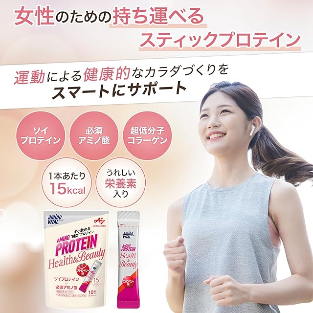 《新品未開封》アミノバイタル 味の素 アミノプロテイン for woman ストロベリー味 10本入パウチ アミノ酸 BCAA EAA ソイプロテイン コラーゲン ダイエット 女性