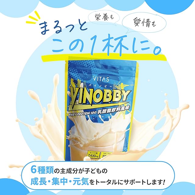 【VITAS VINOBBY 乳酸菌飲料風味】美味しさ、溶けやすさ、成分にとことんこだわった、成長サポート飲料!毎日の栄養補給に最適で、成長期のカラダ作りをサポートします。プロテイン アルギニン GABA カルシウム 亜鉛 12種のビタミン配合