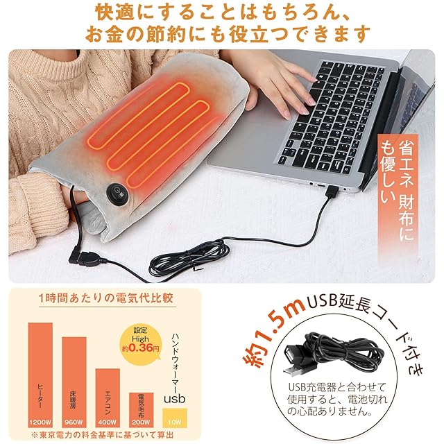 【財布に優しい&洗える再利用できる】ホットマットとして消費電力が約10W、1時間当たりただ0.36円かかります(東京電力の料金基準に基づいて算出)。生活を快適にすることはもちろん、省エネや時間とお金の節約にも役立つ経済的に省エネルギー・エコなホットマットです。このホットマットは手洗いまたは機械洗いサポートします。省エネ・繰り返し使えるな湯たんぽです。水洗い可能、洗濯ネット(別売り)を使って洗濯機を丸洗いも可能です。ご注意:丸洗い前にバッテリー(別売り)を取り外してください。再度使用する前に、 USBケーブルが乾いていることを確認してください。