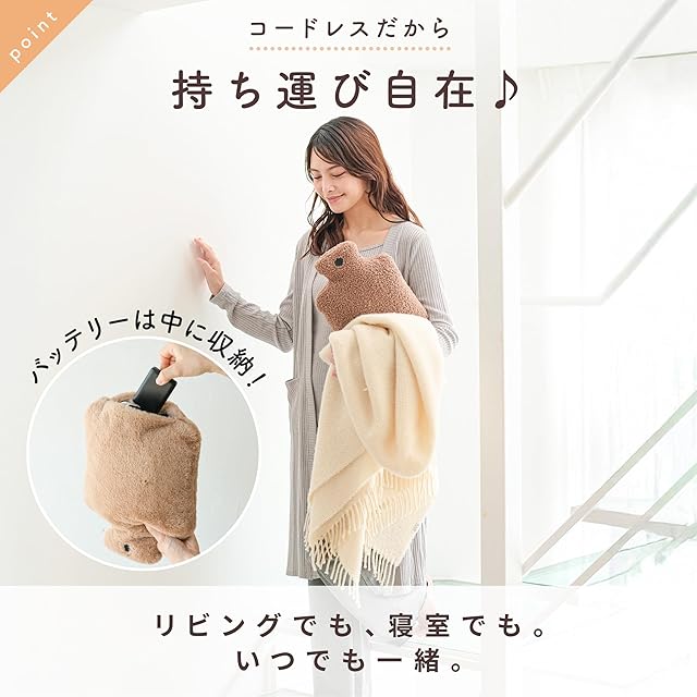 商品名 湯たんぽ型グラフェンクッションウォーマー(ふわたんぽ) 規格 ・サイズ:約W23×D10×H33cm ・重さ:約230g±10g ・素材:カバー ポリエステル/本体 ポリエステル ・推奨入力:5V/2A(USB給電) ・温度設定:弱 約40℃/中 約50℃/強 約60℃(±3℃) ・自動オフ:約120分(安全保護) ・消費電力:最大10W ・付属コード:USB延長コード 約1.2m/USB Type-Aケーブル ・生産国:Made in China 商品説明 お湯いらずで“すぐあったか”。抱きしめたくなる、ふわふわクッション型のUSBヒーター。 両面発熱のグラフェンシートを内蔵し、40/50/60℃の3段階で心地よい温もりをピンポイントに。約230gの軽さで持ち運びらくらく。モバイルバッテリー(5V/2A)でも使えるから、リビングでもワークタイムでもベッドサイドでも活躍します。 2時間の自動オフで寝落ち時も安心。カバーは取り外して洗濯でき、いつでも清潔。ギフト映えするオリジナルパッケージで贈り物にもおすすめです。 ●両面発熱:約15×20cmの発熱シートでムラなくぽかぽか。 ●ふわっと軽量:約230g(※バッテリー除く)。 ●操作簡単:ボタン1プッシュごとに強→中→弱。 ●自動オフ:連続約120分で安全停止。 ●お手入れ:カバーは丸洗いOK(ネット使用推奨)。 ●電気代目安:1日8時間使用で約2.9円(2025年1kWh=36.4円試算/使用環境で変動)。 こんなシーンで! ◆冷えやすい首・お腹・足元などをスポットで温めたい方 ◆デスクワークやリラックスタイムのお供に ◆子どもから大人まで使いやすい軽さとやわらかさを求める方 ◆入眠前のぬくもりづくりに(自動オフで安心) ◆ギフトに映えるパッケージをお探しの方 セット内容 ・本体(ふわたんぽ)×1 ・USB延長コード(約1.2m)×1 ・USB Type-Aケーブル ×1 ・取扱説明書・書 ×1