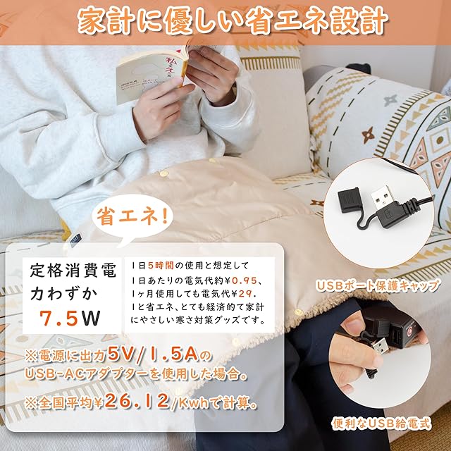 【USB給電式ホットマット&省エネ】:便利なUSB給電式、モバイルバッテリー、PC等のUSBポートから簡単に給電。19cmのUSB延長コードも付き、電源が離れた場所にあっても気軽に使えます。電源に出力5V/1.5AのUSB-ACアダプターを使用した場合,定格消費電力わずか7.5W。電気代を節約できる省エネタイプのUSB電気ホットマット、とても経済的て家計にやさしい寒さ対策グッズです。※こちらの商品にはモバイルバッテリーやAC変換アダプターは付属されておりません。必要に応じて別途でご購入ください。