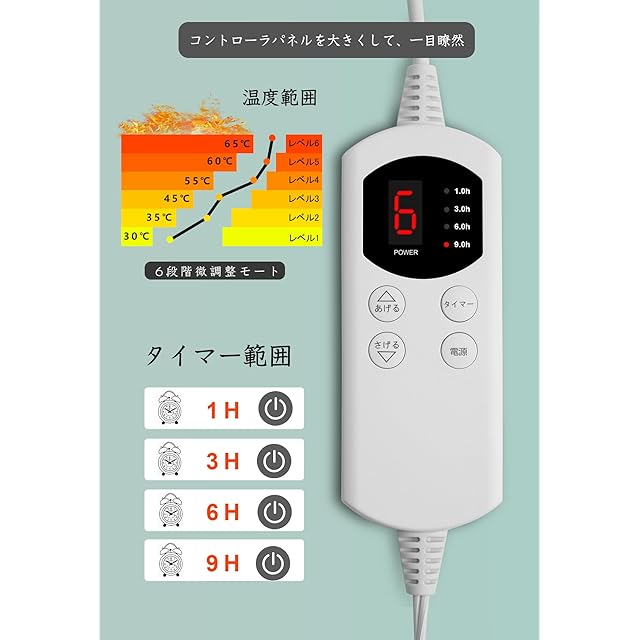 6段階温度調節:ホットマットは 6段温度制御調整(40±2℃-42±2℃-45±2℃-48±2℃-50±2℃-52±2℃)(使用環境の違いによりエラーが発生するため)電熱線はU字型で短時間で効率よく熱を伝達します、均等に加熱し、お部屋の温度やご自身の状況に合わせて調整できます。