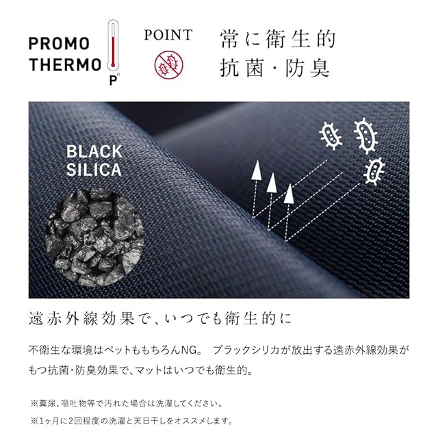 【電気不要でじんわり温める健康マット】高純度ブラックシリカが体温レベルで遠赤外線を放射し、電気や熱源なしで芯から温めます。「ちょっと元気がないかも。」と感じたら、プロモサーモで元気をサポート