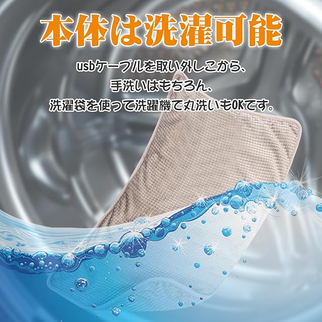 省エネ・水洗い可:1時間の電気代は約10ワットです(約0.2円/1時間)。省エネで、長い時間につけても大丈夫です。USBケーブルが洗濯不可。本体が手洗い可能ですが、本体はねじってはいけなくて、折り畳みできません。いつも清潔に保ち、繰り返し使えるのも経済的です