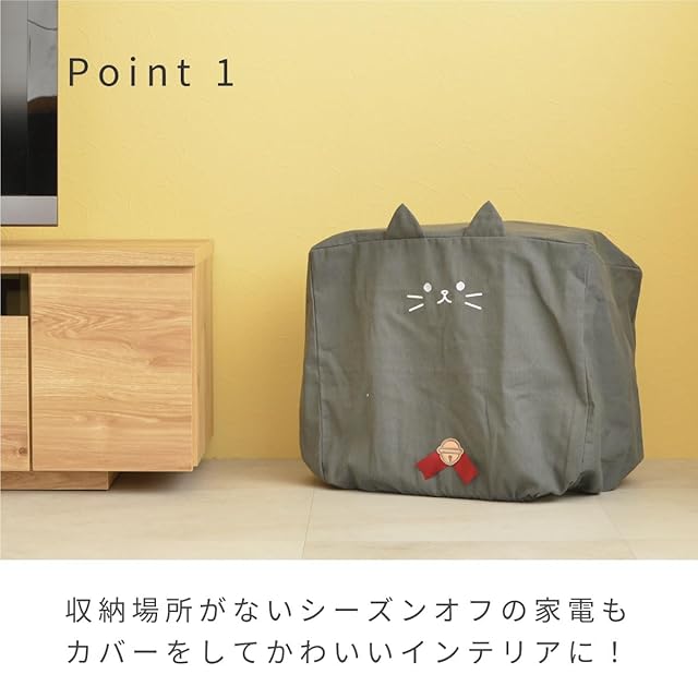 【Point1】収納場所がないシーズンオフの家電もカバーをしてかわいいインテリアに!【Point2】猫カバーの脚元はゴム入りでしっかりとカバーを固定できます。