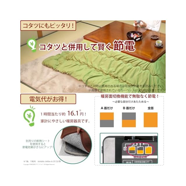 【暖房面切換】 全体を温めるだけではなく、A面とB面を切り換える機能が付いています。 必要な個所だけ温められる省エネ設計です。