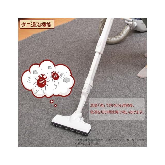 【ダニ退治機能付き】 スイッチを「強」で40分通電させ、掃除機でよく吸い取ればダニ※を除去できます。 ※屋内じん性ダニ類に対応※取扱説明書をご確認のうえ、ご使用ください。