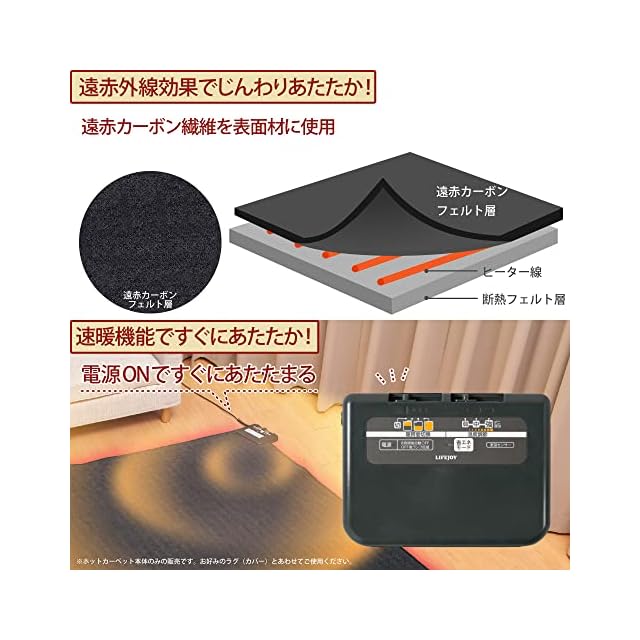 【遠赤効果で温かさ持続】遠赤外線効果で心地よい温かさが続きます。また、室内の温度を感知してカーペットの表面温度をコントロールする室温センサー付きなので(※省エネモード時)省エネ効果が高く、経済的です。