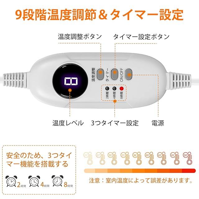 ☀【9段階温度調節&10秒速暖】本製品はコンセント式ホットマットで、USB式に比べて時間が待たずにスバ早く加熱できるメリットがあり、加熱効果も大きいです。温度は25°C から50°Cまでの9段階で、個人の好みや周囲の環境に応じて自由に選択できます。電気座布団は電源を入れて、わずか10秒で春のような暖かさを楽しむことができ、長く待つ必要はありません。