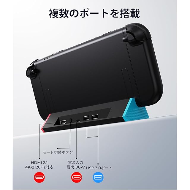 <p><b>Antankドック:Nintendo Switch 2(2025年モデル)専用設計</b><br> 本製品はNintendo Switch 2専用ドックです。旧型Switchモデルや他のゲーム機には対応していません。ドック本体のみの販売で、ケーブルや充電器は付属していません。ご使用には公式のSwitch 2電源アダプターとケーブルをご利用ください。</p> <p><b>超コンパクトなSwitch 2用ドック</b><br> クラシックな赤と青のカラースキームを採用し、サイズは7.5×2.3×1.3インチ、重量はわずか109g(0.24ポンド)と非常にコンパクト。純正ドックよりも小型で軽量です。背面ボタンで簡単にTV出力(8K/4K@120Hz*)とスリープモードを切り替え可能。旅行や大会、日常使用にも最適です。</p> <p><b>安全設計&高度な冷却機能</b><br> スプリング式のガイドノッチがコネクタの摩耗を防ぎ、底面の滑り止めパッドがプレイ中の安定性を確保します。内蔵のスマートチップは、短絡、過電力、過熱、回復の4重保護を提供。純正ドックを超える冷却性能を実現しています。</p> <p><b>Antank S3 MAX – Switch 2のためのプレミアム保護</b><br> PD 3.0に対応したスマート充電機能により、電力供給を自動で調整し、過電圧や過電流を防止します。<br> 強化されたUSB-Cポートは、3点支持構造でコネクタの摩耗を軽減。<br> 軍用規格に準拠した設計により、Switch 2を安心して保護します。</p> <p><b>同梱物</b><br> ・Antank S3 MAX ドック<br> ・ユーザーマニュアル</p>