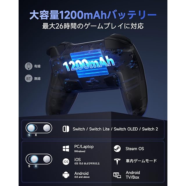 【マルチ互換性 & NFC機能】EasySMX S10 ワイヤレスBluetooth Switchコントローラーは、Switch 2、Switch、Switch Lite、Switch OLED、PC、iOS、Android et Steam Deck。NFC機能も付いておりamiiboの読み込みについても問題なく動作しました。