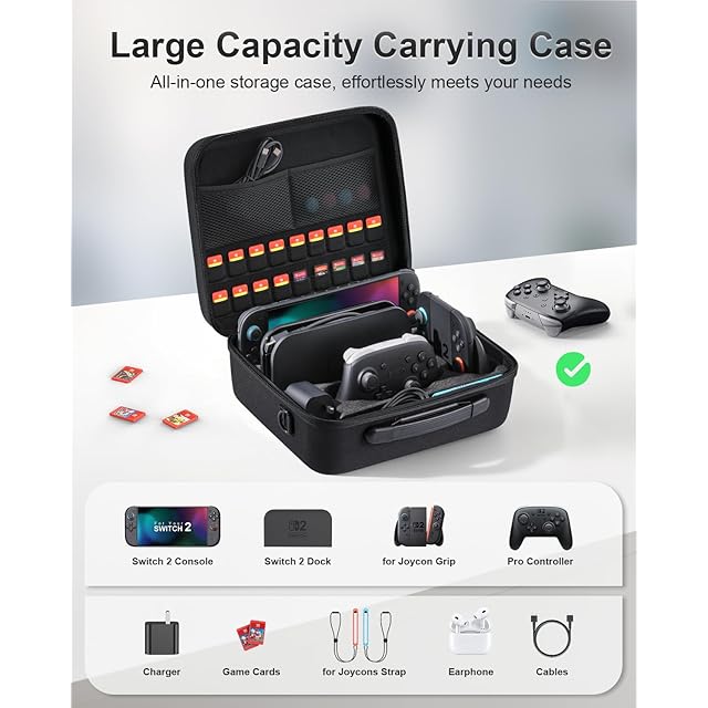 【対応機種】収納バッグは Switch 2 ゲーム機用に設計され、大容量の収納バッグはすべてのゲームアクセサリーを収納するのに十分です。
