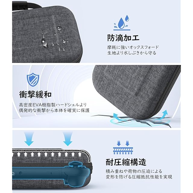 「衝撃に強い高品質な素材採用」内側には耐衝撃性に優れたEVA素材を使用し、外装には丈夫で摩耗に強いオックスフォード生地を採用しており、スイッチ2本体をしっかりとカバーし、落下や衝撃から守ります。耐久性と保護性能に優れた素材の組み合わせで、長期間安心してご使用いただけます。