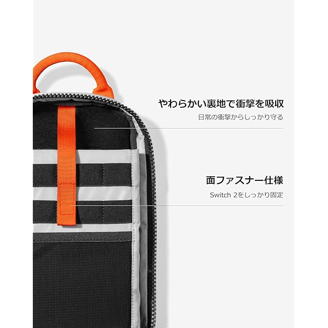 【EVAプロテクション】Switch 2専用コンパートメントにはEVAハードシェルを採用し、衝撃から本体をしっかり守る。内部の柔らかなライニングがスクリーンを傷やダメージから保護。