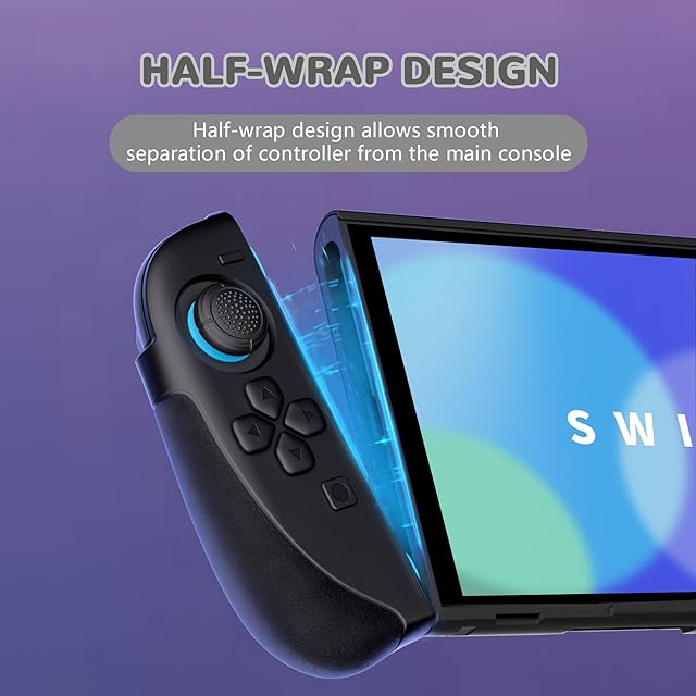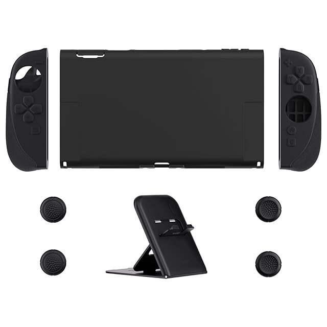 【充実の保護アクセサリーセット】シリコングリップ(左右)×2、PCバックカバー×1、多角度スタンド×1、サムスティックキャップ(凹型×2、凸型×2)付き。※Switch本体およびJoy-Conは付属しません。