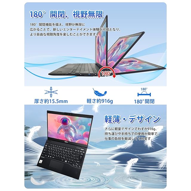 【驚異の携帯性・超軽量設計】 わずか約916gの驚くべき軽さと15.5mmの薄さを実現/国内メーカー富士通が誇る堅牢なマグネシウム合金ボディ/毎日の通勤・通学や出張、カフェでの作業など、どんな場所へもストレスなく持ち運べる究極のモバイル性能を体験してください。