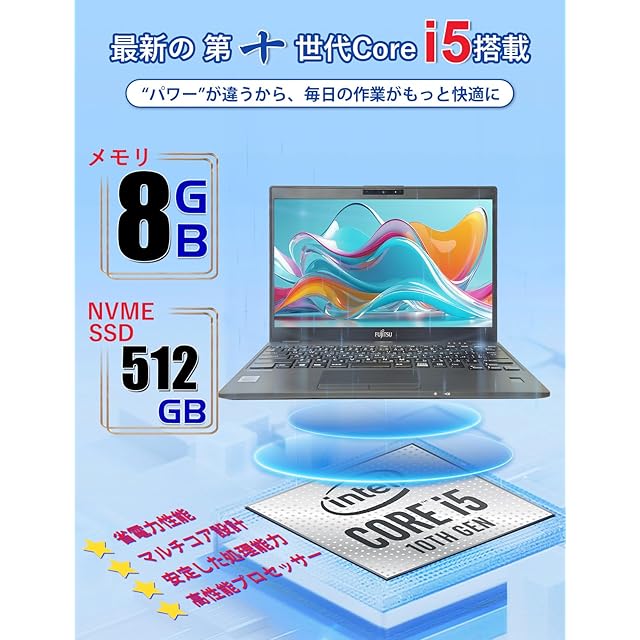 【ビジネスを加速させる高性能】 パワフルな第10世代インテル Core i5-10310Uプロセッサーと8GB メモリを搭載/高速NGFF SSD 512GBとの組み合わせで、OSの起動やアプリケーションの読込みが驚くほどスピーディ/複数のタスクを同時に行ってもサクサク快適に動作し、あなたの生産性を最大化します。