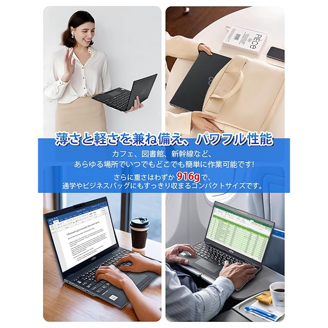 【驚異の携帯性・超軽量設計】 わずか約916gの驚くべき軽さと15.5mmの薄さを実現/国内メーカー富士通が誇る堅牢なマグネシウム合金ボディ/毎日の通勤・通学や出張、カフェでの作業など、どんな場所へもストレスなく持ち運べる究極のモバイル性能を体験してください。
